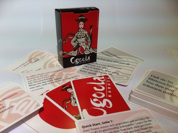 Ogoola Karuta Deutsch 1-48 is a German version of a 400-year-old Japanese card game called Hyakunin-isshu Karuta. The game is sometimes described as intellectual martial arts. It is about listening and being extremely focused and fast, just like the Samurai with their swords. Only here you fight with cards instead. The game is comprised of two decks of...