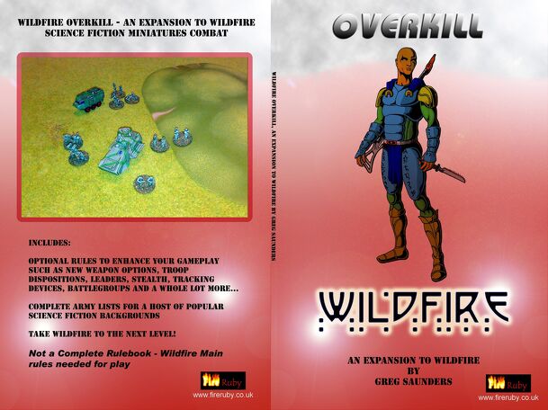 Wildfire Overkill, the first expansion to the Wildfire science fiction miniatures skirmish game! At 50 pages and available in book and pdf form, Overkill includes a small number of rules clarifications from the main rulebook based on player feedback, followed by a whole host of optional rules to enrich your games including: playing in 25mm, new weapon...