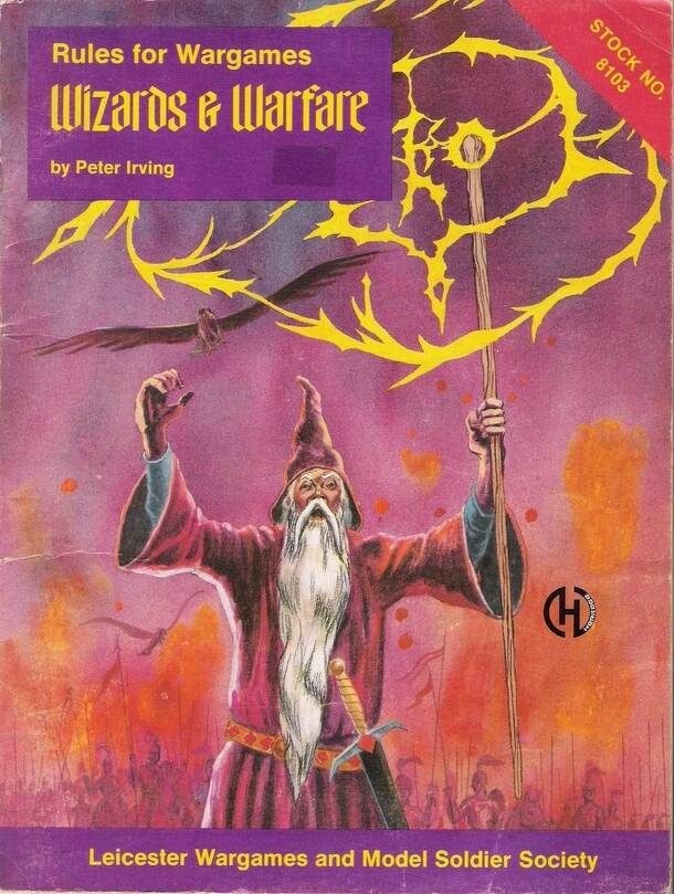"Wizards & Warfare - Rules of Wargames" was one of the earliest fantasy miniatures rule sets to be published. It was heavily inspired by Tolkien's "The Lord of the Rings", and thus includes references to Treemen, Huorns, evil wizards with gunpowder, Nazgul, etc. From the Introduction: "Followers of Good Wizards, minions of Dark Lords, this is for you....
