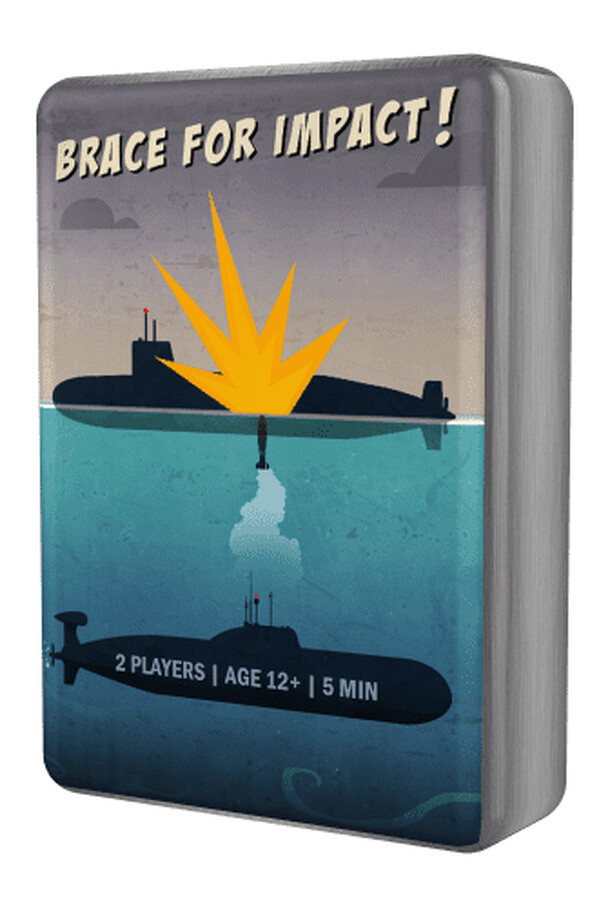 Description from the publisher: Brace for Impact! is a 2-Player micro dice game that requires lightning-quick decisions, dexterity and stamina. As a Naval Submarine Commander your mission is to either gather enough vital intel or destroy your enemy’s crew before your enemy beats you to it. Each Commander controls two dice and a meeple crew aboard a...