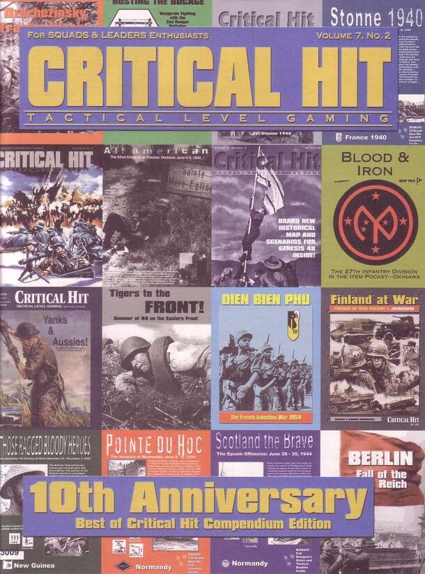 This is Volume 7, No. 2 of Critical Hit magazine. (2004) This is a reprint and reworking of previously released scenarios and articles to commemorate the 10 year anniversary of Critical Hit. Also included with this magazine is a reprint of the historical map of the Grain Elevator in Stalingrad. Included are the following article reprints: Armored Assault...