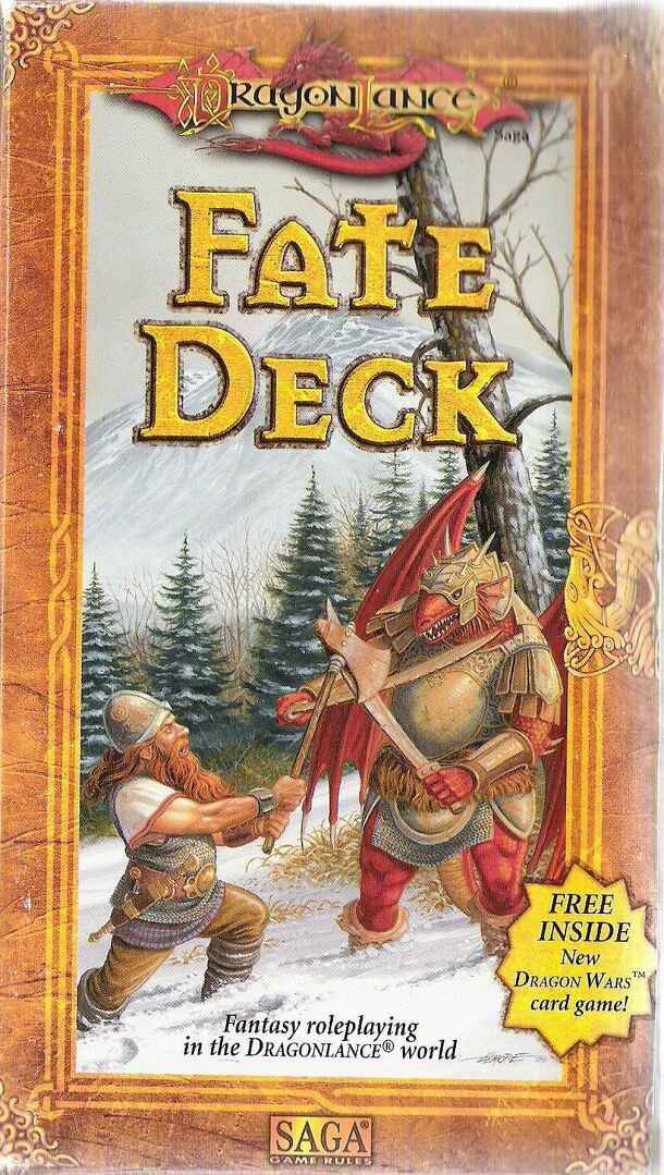 Dragon Wars is a card game included in the RPG aid, Dragonlance Saga Fate Deck. While the main purpose of the Fate Deck is to play an RPG using the Saga system, the deck includes rules for a stand-alone card game, Dragon Wars. The RPG rules included in the game are credited to Steven Brown, Steve Miller, and Ed Stark, but no designer is mentioned for...