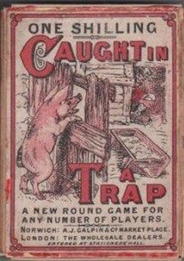 A set collecting game. The four cards to a set tell a story. The first is the Victim, the 2nd is the Trap, the 3rd is Caught!, and the 4th is the Escape! Players are given an agreed number of counters, some of which are added to the Pool. When you take certain actions, you may have to put more counters into the Pool or you might be lucky enough to take...