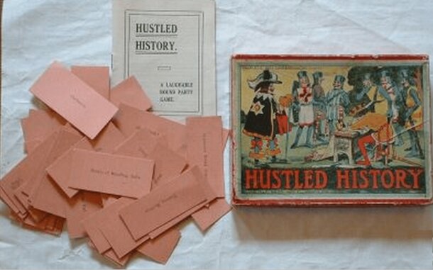 Unusual chase game. One player plays the part of the husband, and others are relatives and friends of his wife. An elusive spouse appears and disappears from the board as other players roll dice to move about and see if they can land on the space where the husband is hiding. Winner is either the husband or everyone else. Husband is also given a level...