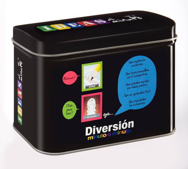 The object of Ideas al Minuto is to say as many ideas as possible in one minute. In teams of 2-5, players receive challenges based on the cards that they draw. Within one minute, each team gives as many answers as possible on the same challenge, with the conditions changing each time thanks to drawn cards showing animals, characters, places and things. The...