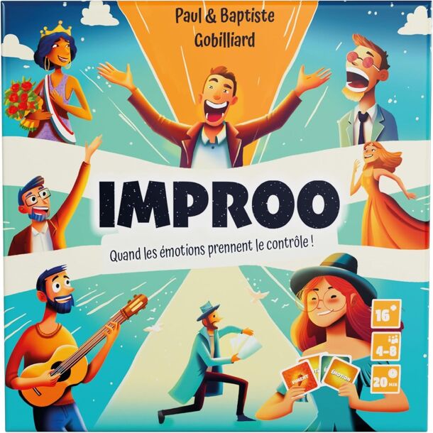 IMPROO, WHEN YOUR EMOTIONS TAKE CONTROL! Unleash your creativity and improvisational skills by embodying the emotions dictated by the cards! Whether you're an acrobatic sheep tamer or a raid negotiator, your challenge is simple: Seduce the JUDGE with your interpretation while remaining faithful to the emotion indicated on your card. —description from the...