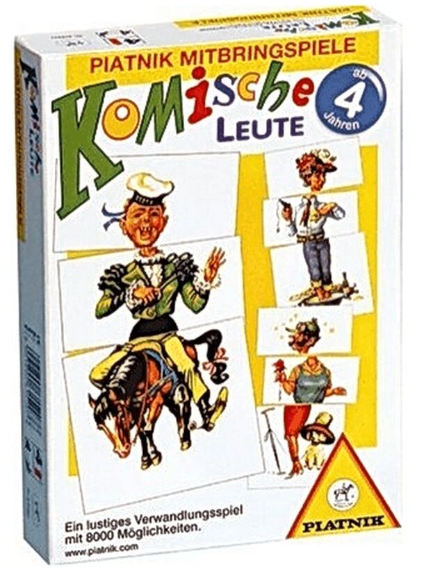 A childrens game consisting of 60 cards divided into 3 groups with 20 cards each: front, middle and rear parts of funny people. Game is played by each player combining a card of each group to one people each turn. This will produce comical results which will make the children laugh. Then players can trade body-parts to create proper people. You score...