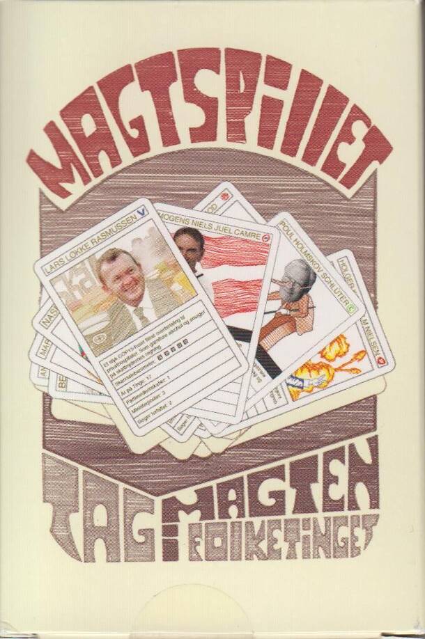 Magtspillet (The Power Game) is a political incorrect game about Danish politic, which can be played by 2-4 players. You strive to collect the largest team of ministers, to be able to take power in the "Tinget" (Danish Parliament), and become statsminister (Prime Minister). Betrayal, lawbreaking and slander are just three of powers the players can use....