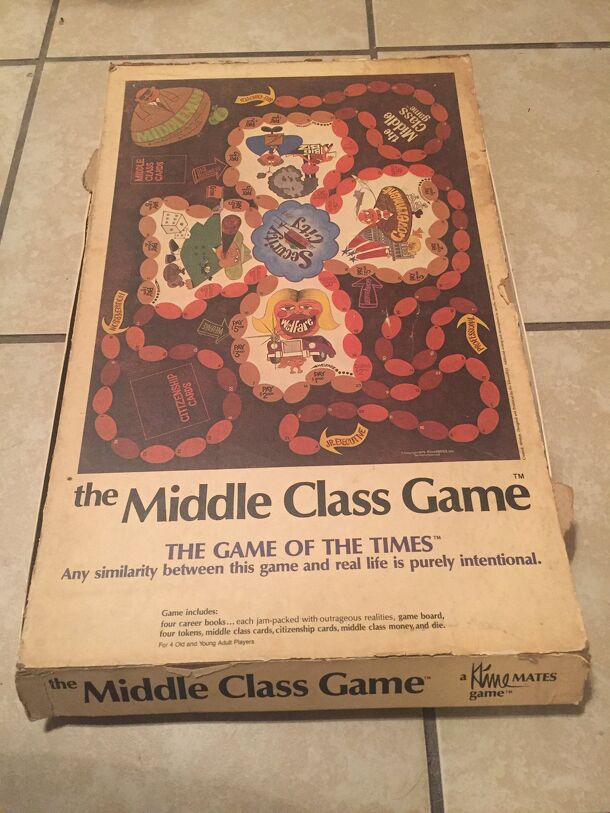 The Middle Class Game: The Game of the Times is a roll and move game that revolves around dealing with career events, Life events, government policies, personalities and American trivia. As the game progresses, choices are available to choose different paths in your career and "sell out" to different factions. Players start the game in one of four middle...