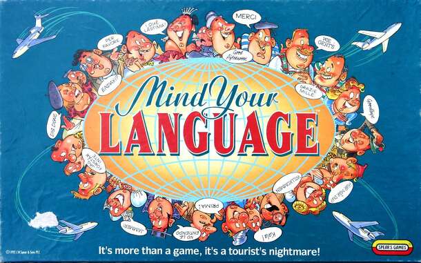 From the box and rules: When you play MIND YOUR LANGUAGE you will speak Swedish, eat spaghetti and see the Eiffel Tower, all from the comfort of your own living room! Who can answer the questions you need to ask? Using the amazing Spear-o-phone pronunciation system, you can ask for paella in Spanish and moussaka in Greek! Try and keep track of the answers...