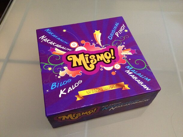 From GMA News Online (August 2009): 'The object of the game is to win three rounds, each one marked by a Mis, Mo and ! chip. Each player receives 10 answer cards, each of which contains a word from Filipino popular culture. Two roulettes, loaded with adjectives, are spun. The adjectives are formed into a question - Ano ang kadiri-to-death na mayabang? –...