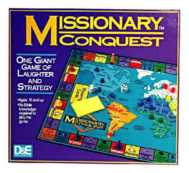 Each player is an American Christian missionary with the goal of visiting a number of countries on short-term mission trips. Various cards that are drawn poke fun of common experiences of those who go on short-term mission trips, including setbacks in raising money to go on the trip, and (in another country) finding out that the local cuisine does not...