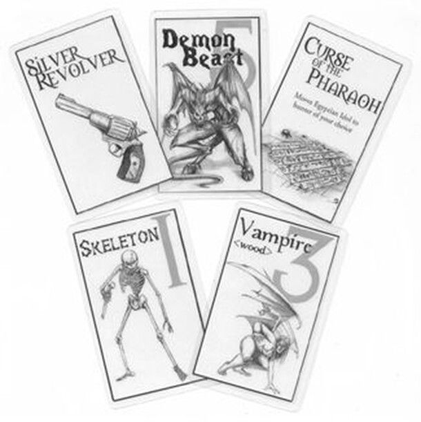 Monster Hunters is a card game where players are trying to either be the last hunter standing or the hunter with the most bounty points. The game involves a fair amount of screwing over other players. Monsters are killed by rolling against their rating with a six-sided die. The game comes packaged simply in a plastic zip-top bag, with thick, laminated...