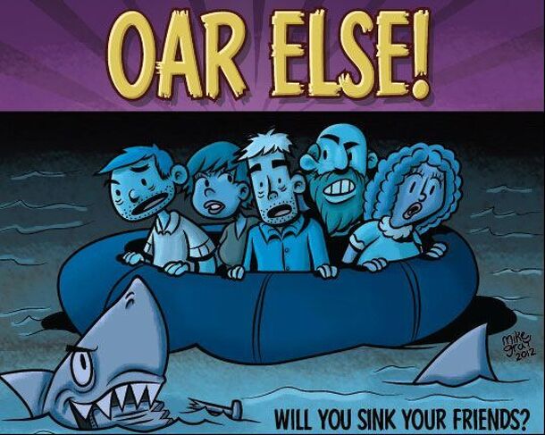 Stranded in shark infested waters, race to shore or find the items necessary for an immediate rescue. Play as a "team" or jump overboard and go it alone, overcoming torrential storms, blabbering parrots, pirate attacks, and simply losing your mind. Hoard food for an end game bonus. Oar Else! is a "cooperative" card game for 3-5 players, ages 8+. Everyone...