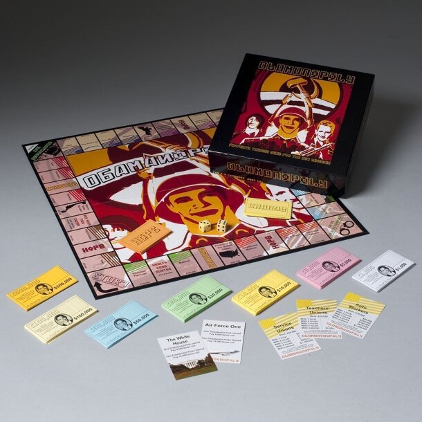 In Obama! the game, each player is attempting to win over the United States during the election of 2008 to be Obama! There are seven state cards that vary between one and three points. To win a state card, each player must build campaigns based on four areas: political, charisma, financial, and media. When a campaign reaches the cost of the state in each...