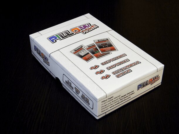 Pillow Fight is a casual card combat game for 2 to 4 players that takes less than an hour to play. 2 player games average about 20 minutes. The objective is to be the first player with 20 Movies, the Remote card, and at least 1 Pillow in play. Players have Player cards that give them a unique identifying color. Playing a card that matches your color is...