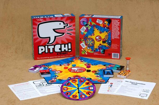 THE GAME: The PITCH-A-STORY! board gives you and your teammates a chance to create and act out stories during every turn in all kinds of places where story is king — film, TV, cartoons, literature, theater, and storytelling festivals. OBJECT OF THE GAME: To become a star by earning credits and review points awarded by your fellow players when you pitch...