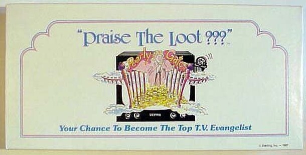 "Praise the Loot???" is a product of the mid-1980s, when at least one prominent televangelist was found using his fun raising abilities for somewhat less than evangelical goals. In this game, 2-6 players race to the Pearly Gates. However, instead of amassing virtues - or even converts - the victor must acquire sufficient money and possessions in order to...