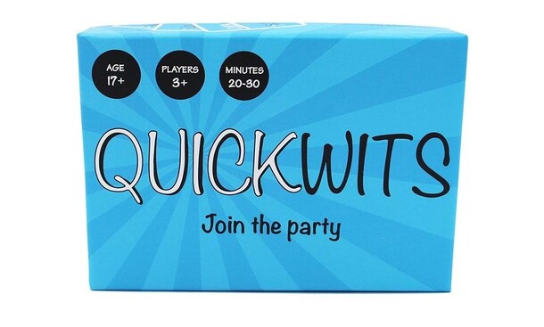 QuickWits is a fast-paced card game based on naming items within certain categories and descriptions. The game is very similar to Anomia, but the content is more mature in theme. During the game, players take turn drawing a card and placing it in front of them. Each card has one of six different symbols on it, and when two players have the same symbol on...