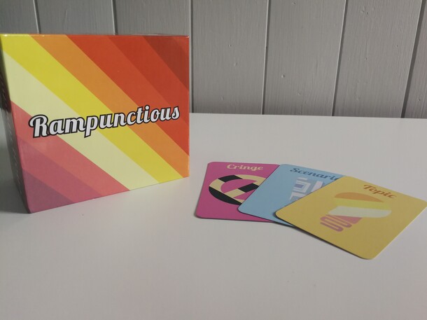Description from the publisher: Rampunctious is a party game about making terrible puns and word play. The game starts by the players making puns out of their own names. Whoever has the best pun becomes the Pundit. The Pundit has a hand of 5 Topic cards, they draw a Scenario card from the deck and read it aloud to start the round. Each Scenario shows a...