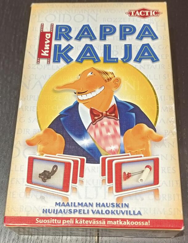 Rappakalja Matkapeli is a travel version of Rappakalja. Main idea is to guess correct answer to given question. If player doesn't know the right answer he/she may write anything. After everybody has given their answer papers to "hämy" player and he/she has accepted them all answers are read and voting begins. Player who got most votes gets two points and...