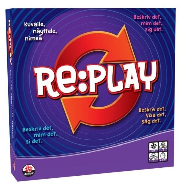 A boxed version of the classic Celebrities game, Re:Play has players come up with 40 topics by writing them on small bits of card and then placing them in plastic holders. Players form teams and then start explaining the topics one by one to other members of their team. On the first round, players can say anything except what the card says. On the second...