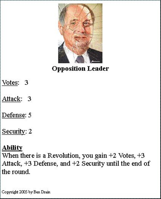 From the publisher's website: Realpolitik is a fast-paced, tongue-in-cheek game of blackmail, backstabbing, and brinkmanship. Each player represents a dirty-tricks organization of a country, complete with their own funding and political clout. Each round, players draw an Agenda: a person, place or event that is of particular importance to their nation....