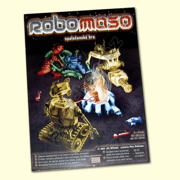 From publishers website: Low-budget original boardgame for 2 – 4 players, packaged in the foil as a magazine. Strategy "shooting" game with robots at the space ship. Players gain various improvements and weapons for their robots. Each game is different thanks to the variable setting of the space ship. In each game a different strategy leads to a victory......