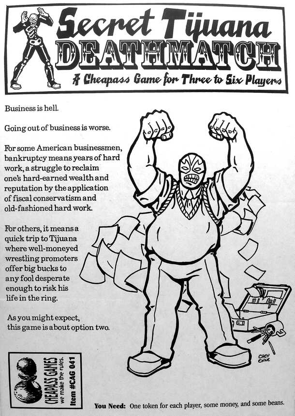 In old Tijuana, bankrupt American businessmen go to die -- and wrestle -- but not in that order... It would be a shame to encourage them, unless of course you're making a profit off of it. In Secret Tijuana Deathmatch, it is your job as wrestling promoter to go to the United States, hire five of the best (or most desperate) businessmen and then pit them...
