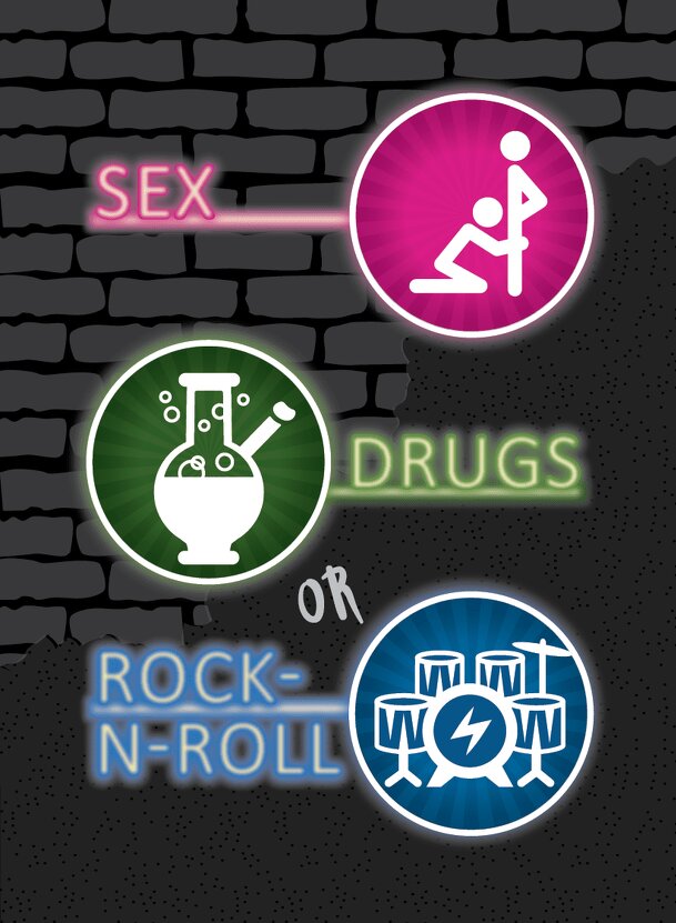 Sex, Drugs or Rock-N-Roll is an outrageous adult party card game where you can get down and dirty with your friends! How it works: Draw a card - this card determines the letter that's now in play for the round. Say your word - If the letter B is drawn, every answer needs to start with the letter B that is related to Sex, Drugs or Music (Rock-n-Roll only...