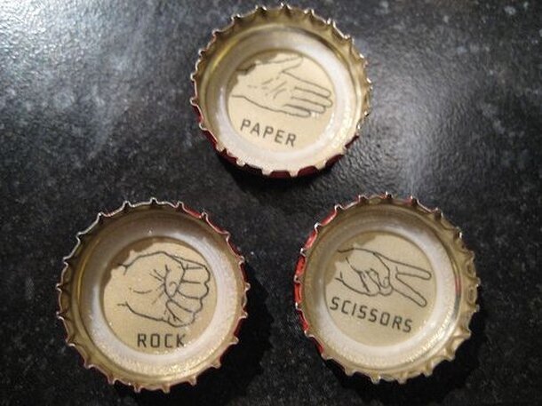 Using SESSION 'bottlecaps' having inner depictions with 2 kinds of each for these with a total of 6 now, then you can PLAY out "Rock, Paper, Scissor" games. Each participant shall utilize ONE complete 'Set' of "RPS" 'bottlecaps' for these during their PLAY, or in the case with "Solitaire" then ALL for that lone player. "Solitaire" Method: Place ALL of...
