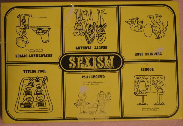 Your goal in Sexism is to move from the doll house to the White House, with the first player to cross the finish line winning. What you win, however, depends on your gender and whether you proceed to the "Man's Goal" or the "Woman's Goal". If you win as a woman, the game instructs others that "You are now a person and must be treated as such for 24 hours";...