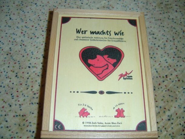 This game, which translates as "Who Does it How?", is the very evil twin to the Zoch game Who Lives Where. Like its child-game brother, this game includes very nicely carved small houses with animals laser cut from their bases. The trick in this game, however, is that instead of friendly crocodiles, pigs, and others trying to find the right home, this game...