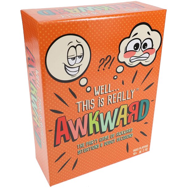 A party game where all players take turns in reading out really awkward scenarios, then choosing from three dodgy outcomes! The challenge then is for players to guess which dodgy decision was chosen?! For example... Well... this is really Awkward! I'm on the flight from hell! I have a baby screaming beside me, a kid behind me who is constantly kicking me...