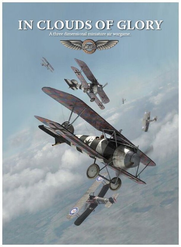 In Clouds of Glory (ICOG)is a tabletop air wargame that recreates aerial combat during the World War One. The game was developed in Denmark the 90's by 3 friends with a common passion for the WWI "Knights of the Air". The game features true 3-D action with accurate models of all the greatest planes of this era: SPADs, Sopwiths, Fokkers, Pfalz´es...