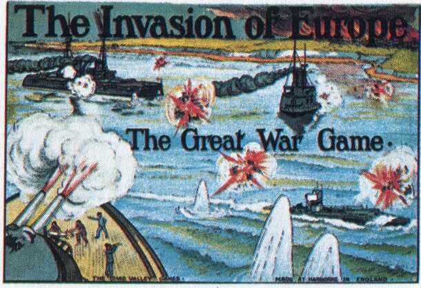 This strategic war game was produced in the years leading up to World War I. Two invading forces are set against each other, a 4 strong Navy against a 5 strong Army. The object is to secure possession of Europe by placing pieces on squares containing "Ringed Cities". Moves are made by both a die roll and a compass spinner which determines the direction...