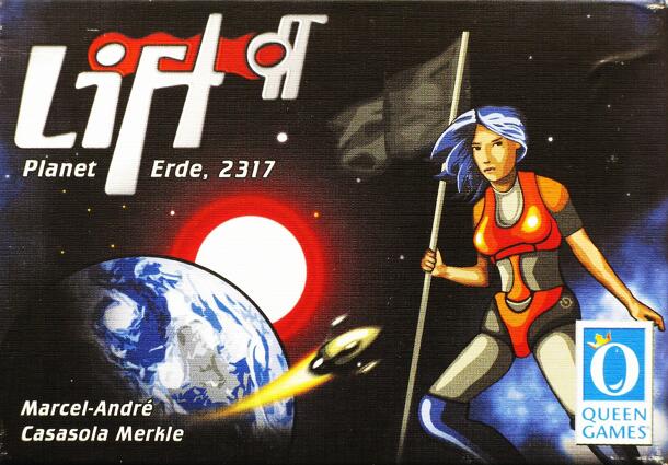 In Lift-off, players rush to allocate resources for planetary missions. Each planet is contested by two players, either (or both) of whom can add cards representing, for example, settlers, energy modules, terraforming, or mining to their side. A given planet may provide mineral resources and a number of settlement points -- the minerals can be collected...