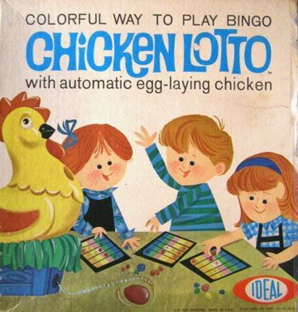 Players attempt to fill their lotto cards (5 lines, each of a particular color) with small plastic balls. The balls are dispensed individually from inside a hollow plastic chicken by moving its tail. If a row is already full and a ball of that color is drawn, the ball is replaced in the chicken and the next player has their turn. The first player to fill...