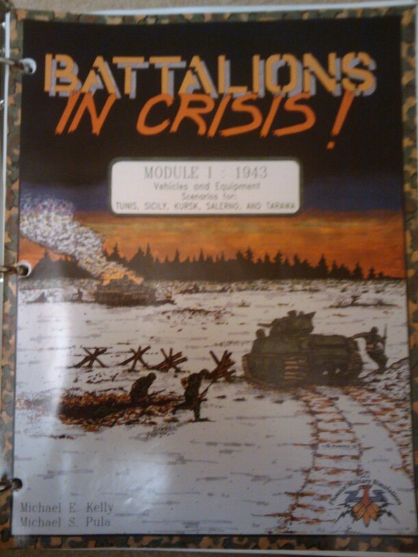 From the cover: Vehicles and Equipment Scenarios for: Tunis, Sicily, Kursk, Salerno and Tarawa Inside: This package contains 45 more vehicles plus additional weapons to use with Battalions In Crisis! Each theatre of operations in 1943 is represented with a historical scenario, The scenarios range in complexity from one player on a side to large scale...