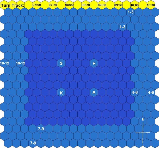 From the designer: This is an even simpler, air group version (for me and my 8 year old son to play) of my squadron level 1990 game Deadly Reckoning, which I am in the process of revising/updating. It nonetheless seems to have all the essential elements and decision points of a depthy Midway game. 90 miles per hex, 3 hour turns, 13 Japanese combat units...
