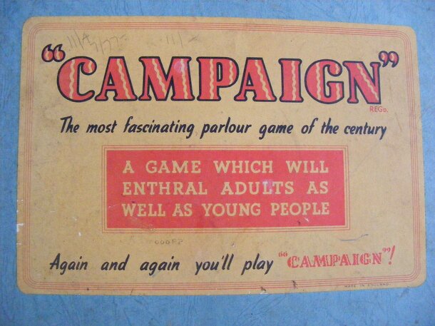 Not to be confused with the identically named game produced by Waddingtons in the 1970's (geek ID 1964). Campaign is a board wargame produced by Wills and Hepworth in Loughborough, United Kingdom. The company is better known for producing the "Ladybird" range of childrens books. The game components are: 2 x sets of cardboard 4 artillery pieces (one red...