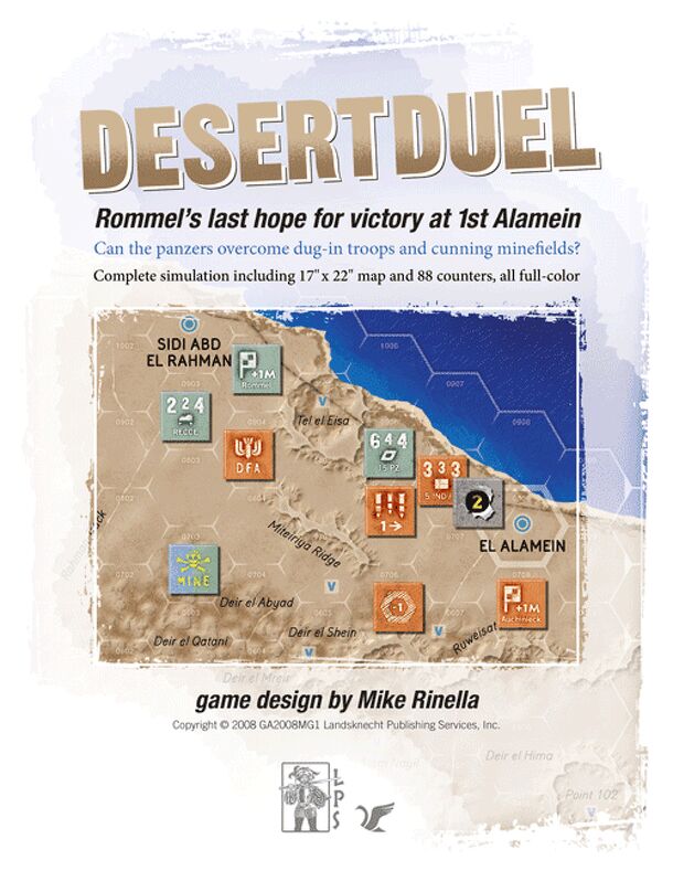An LPS bonus mini-game for two-players, Desert Duel, by designer Mike Rinella, looks at the first battle of Alamein in 1942, where modern armies fought each other and the desert, in a desperate effort to breakthrough to or defend the path to the Nile. This is not the Monty vs. Rommel El Alamein battle most people think of but an earlier action, July 1 to...