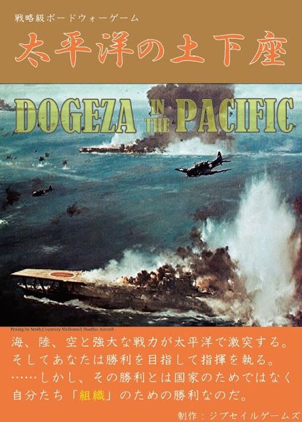 Dogeza in the Pacific is a strategic level wargame of the Pacific War. In a two-player case, the flavor of this game is a compact edition of Avalon Hill's Victory in the Pacific, but in a four-player case, each player (Japanese Army, Japanese Navy, U.S. Army and U.S. Navy) fights each other in order to save face of each organization. Sometimes army player...