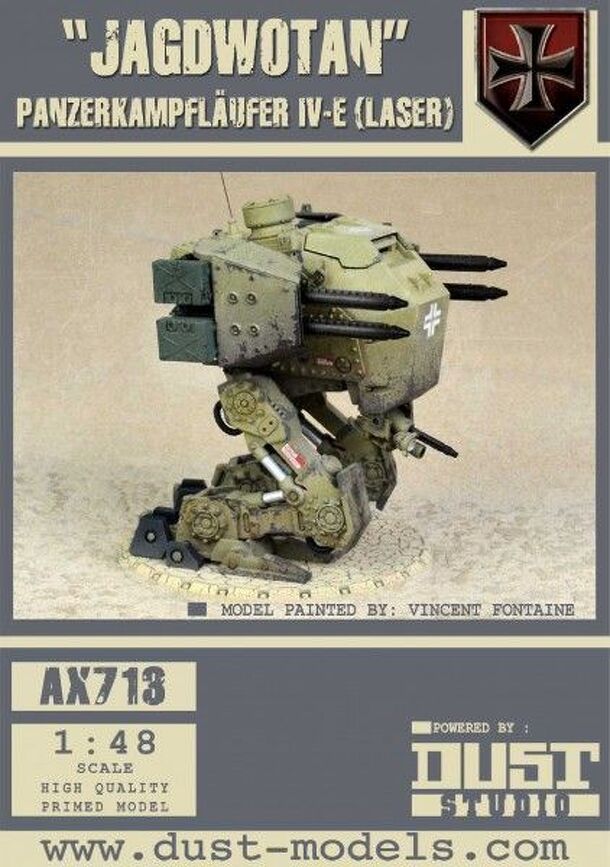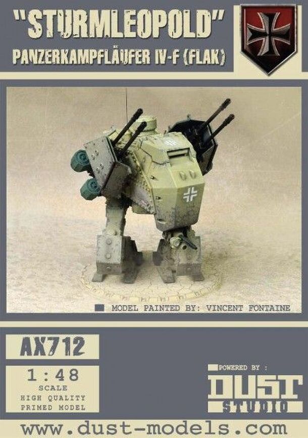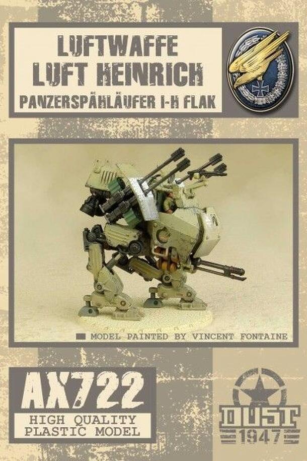 This airborne operations ready walker is used in the Luftwaffe Ground Divisions. Thanks to its thrusters, it can be parachuted directly on the battlefield, joining the action as soon as the rest of the invasion force arrives. This model is tasked with destroying enemy attack planes and heavy infantry with the help of its powerful long range antiaircraft...