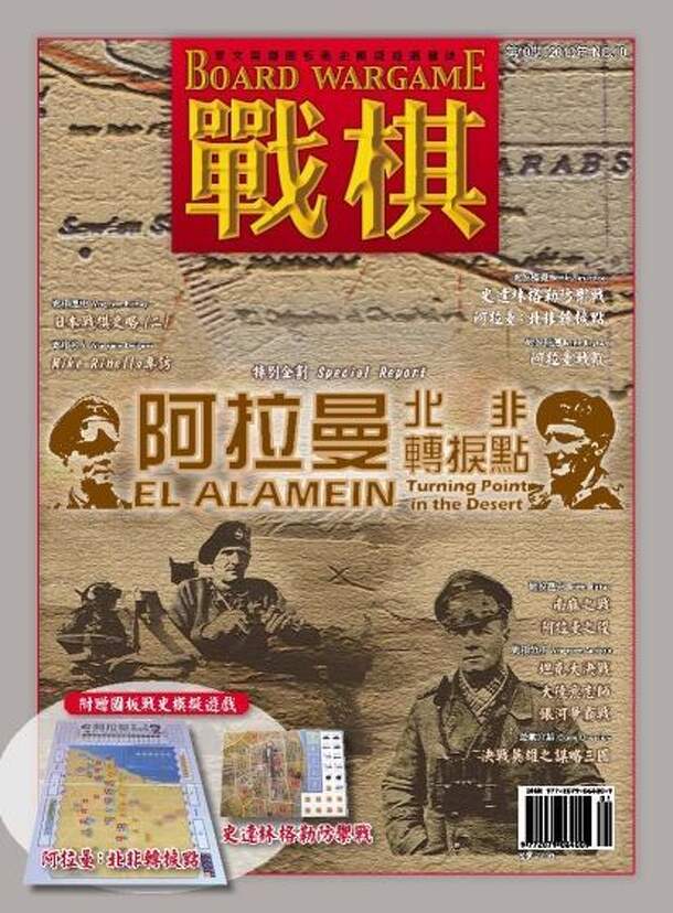 "El Alamein" is a two-player operational wargame simulating the 2nd Battle of El Alamein from 23 October – 11 November, 1942. One player commands the attacking Allied forces (British, Commonwealth, Free French and Greek) while the other player commands the defending Axis forces (German and Italian). Each hex measures 5km across, unit scale is brigade...