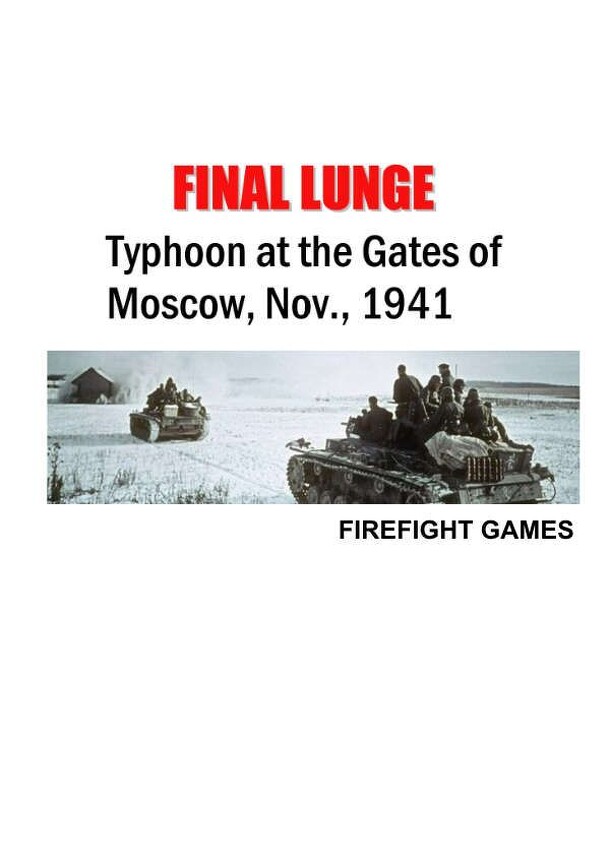 Final Lunge depicts the German operation, Typhoon, to assault Moscow from mid-November to Dec. this was the last lunge to continue an epic event that had started in June, 1941. At one point, in early October, it actually seemed possible to reach Moscow before the winter because there was little to halt them. That chance was wasted and the weather turned...