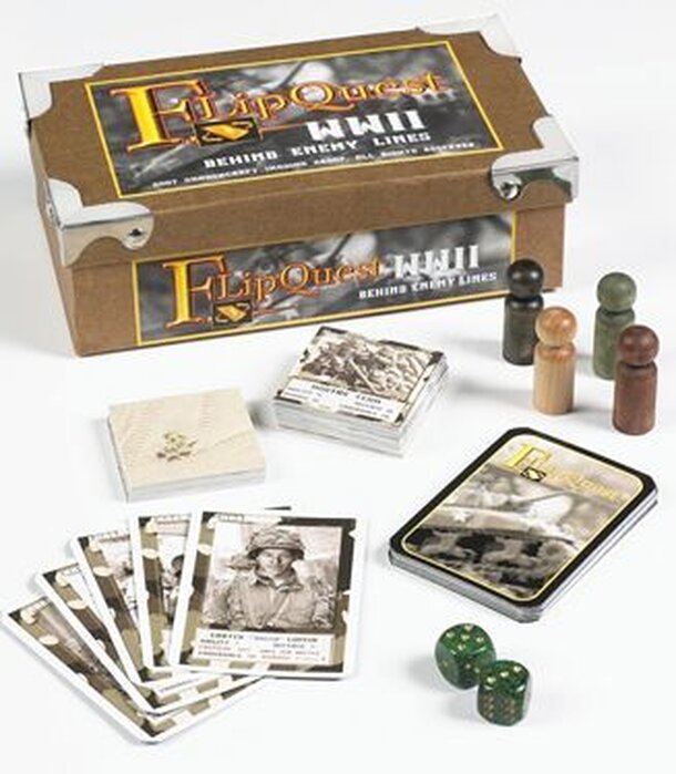 World War II FlipQuest game. From official website: The briefing room suddenly becomes quiet as the Colonel walks up to the podium. "Men, we have just deciphered a message from the German High Command to the German Commander in the French town of Nancy. A Company of Special Troops will be arriving with a large shipment of Nazi gold coins. It is their job...