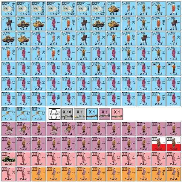 France 1944 is a game on the Allied invasion of France which continues until June 1945, despite the name. Turns are one week. The game is a fairly simple affair, with turns consisting of just movement, combat, and exploitation. Units are backprinted for step reduction. Most units are divisions. There are advanced rules which include things such as fuel...