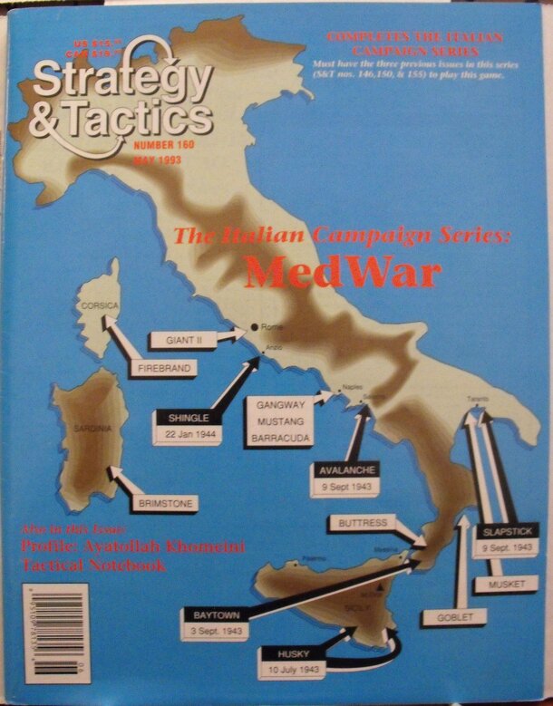 The Italian Campaign Series: MedWar, is the fourth & final game in the series. This game adds a strategic map of the Mediterranean Sea around Italy and adds full Air and Naval operations to the game system. The game cannot be played by itself... ownership of Sicily, Salerno, and Anzio, are required. This game was first published in Strategy & Tactics...