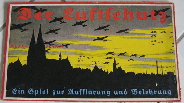 Published in 1941 by Der Adler, the Luftwaffe (German Air Force) illustrated magazine, this easy children game see the two players sending their aircraft to bomb enemy targets. No need for a die - a spinner in the corner gives the random number for movement. This is a little game similar to richer boxed games from the same period as Adler Luftkampfspiel...